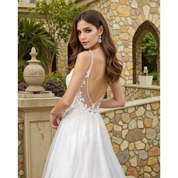 JAEDEN Wedding Dress Lace 2025 - Tulle Wedding Dresses for Bride V Neck Ivory 20W
