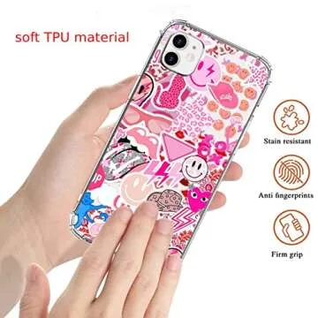 Jaexzpoe Indie Aesthetics Smiling Face Collage Case Compatible with iPhone 11,Colourful Trendy Cool Teen Girl Case for iPhone 11,Unique Soft TPU Bumper Case for iPhone 11