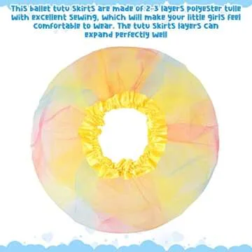 Show moreIndulge your little ones in the whimsical world of dance and imagination with the JaGely 9 Pcs Ballet Tutu for Girls. This enchanting collection features 9 beautifully crafted tutus, each showcasing a delightful array of vibrant colors that will instantly bring a smile to your child's face! Made from high-quality polyester tulle, these skirts are designed with both comfort and style in mind. The dimensions are tailored perfectly for girls aged 2 to 8 years, with a length of 11 inches and an elastic waistband that accommodates waist sizes of 16-25 inches. The sturdy design ensures that these tutus are not only fashionable but also safe and reliable for playful adventures.