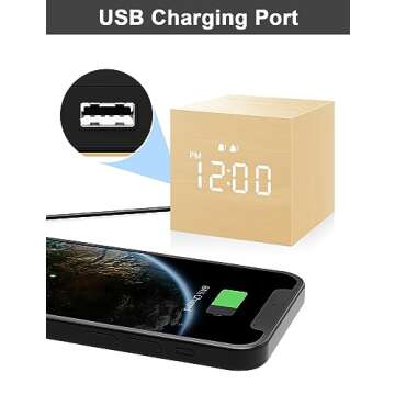 JALL Digital Alarm Clock, with Wooden Electronic LED Time Display, 3 Dual Plus Alarm, 2.5-inch Cubic Small Mini Wood Made Electric Clocks for Bedroom, Bedside, Desk, Yellow