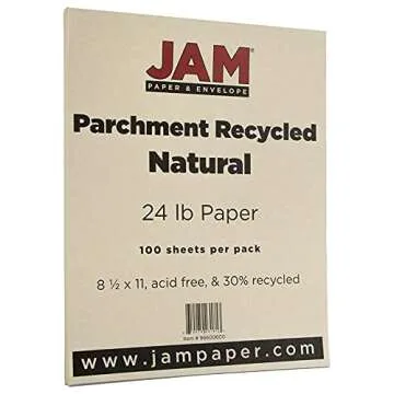 Show moreTransform your project into a work of art with JAM PAPER's Parchment 24lb Paper. This premium quality colored paper is designed to not only meet your printing needs but elevate them. Coming in a sophisticated Natural Brown color and formatted in size 8.5 x 11 inches, it is perfect for an array of uses—from newsletters and brochures to invitations and announcements. With a generous quantity of 100 sheets included in each pack, you can tackle large projects or ensure you have enough paper on hand for various tasks.