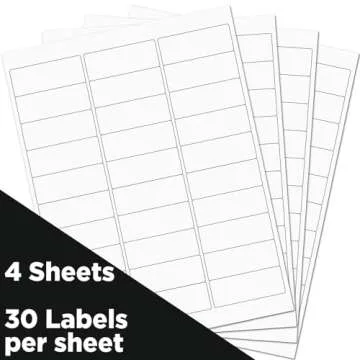 Show moreIntroducing the JAM PAPER Return Address Labels, the ultimate solution for all your labeling needs! These standard mailing labels in classic white offer a perfect blend of functionality and style, measuring 1 x 2.625 inches. Whether you are looking to add a personal touch to your gifts, streamline your mailing process, or keep your space organized, these labels are a must-have addition to your stationery collection. With 120 high-quality labels per pack—divided into 4 easy-to-use sheets featuring 30 labels each—you're equipped for all your labeling tasks. Printed on a smooth paper surface, they provide a crisp canvas for clear and sharp text, making them ideal for any event, be it home organization, mailings, or crafting projects.