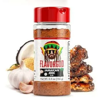 Jamaican Jerk Rub Mix by Flavor God - Premium All Natural & Healthy Spice Blend for Grilling Chicken, Beef, Seafood, Vegetables, Salad, Tacos, Pizza, Pasta - Kosher, Gluten-Free BBQ & Steak Rub