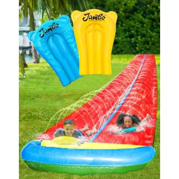 Show moreIntroducing the JAMBO Slip Splash Slide for Endless Summer Thrills—your family's ultimate companion for fun and laughter this summer! Spanning an exciting 24 feet, this impressive inflatable slip-n-slide is engineered for shared joy, allowing multiple kids to zoom down its smooth surface together. Designed with a user-friendly central channel sprinkler system, the JAMBO Slide ensures a consistent stream of refreshing water with each exhilarating ride, elevating the experience as your children splash into their personal fun zone! Beyond just a slide, it invites families to forge lasting summer memories in their backyards, fostering an active lifestyle and strengthening friendships through outdoor play.