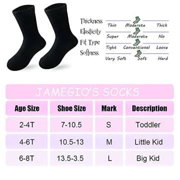 Why You Will Love This Product?Choose the JAMEGIO Boys' Crew Socks for a delightful mix of quality, comfort, and style! Each pair has been thoughtfully designed to not just meet your child's needs but to exceed them, giving them confidence and freedom in their movements. The breathable fabric keeps their little feet fresh, while the classic colors provide the versatility all parents desire. Your child will love the way these socks feel and look, making each day just a little brighter!