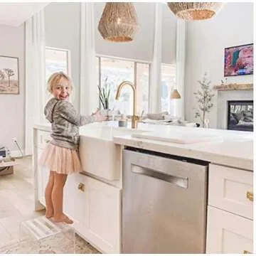 Show moreIntroducing the James Reese Baby Tippy Toe – a sleek, modern step stool designed specifically for children. Crafted with care, this sturdy step stool is made from crystal-clear, high-strength 3/8" thick acrylic, ensuring it stands the test of time while complementing your home décor. With polished edges that prevent any sharpness and tapered legs for stability, the TIPPY TOE is more than just a functional piece; it’s an aesthetic addition to any room. Equipped with four water and slip-resistant vinyl strips on the top surface, it provides a secure footing for your little ones as they reach for their favorite items, boosting their independence and confidence. Whether they’re brushing their teeth or grabbing a book, the TIPPY TOE is their reliable companion to greater heights.