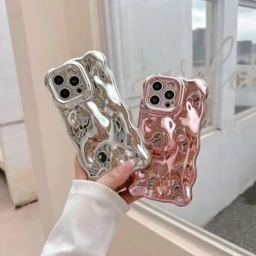 JANDM Case for iPhone 13 Pro Max,3D Wave Bubble Shape Ripple Chrome Pattern Soft Non-Yellowing Bumper Case Glitter Shiny Camera Shockproof Women Girls Cover Case for iPhone 13 Pro Max -Silver