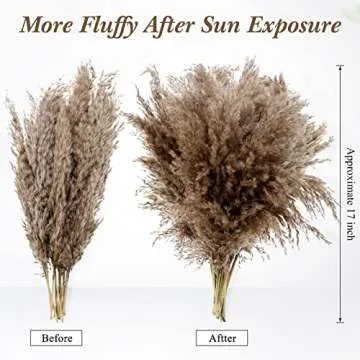 When compared to other brands offering dried pampas grass, Janinka stands out for its unmatched volume and superior quality. While many alternatives offer smaller bundles with poorer stems, our product guarantees a full, abundant experience with each order. Unlike competitors, which might feature flimsy materials, Janinka pampas grass boasts resilience and fluffiness after minimal exposure to sunlight, making it a superior choice for serious decorators.