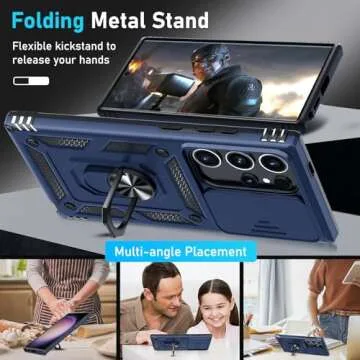 Janmitta Compatible with Samsung Galaxy S25 Ultra Case Built in Slide Camera Lens Cover+Screen Protector+Finger Ring Holder Kickstand,Heavy Duty Shockproof Full Body Phone Cover,2025 Blue