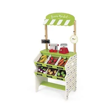 Compared to other market stands on the market, Janod's Grocery Play Stand excels in durability and quality. While many plastic versions may offer bright colors and a variety of pieces, they often lack the longevity and aesthetic charm of a well-crafted wooden toy. Janod provides timeless fun and quality that sets it apart from competitors, making it a worthwhile investment for children’s playtime.