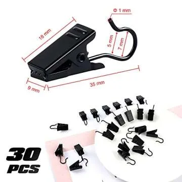 Show moreMeet the JANYUN 30 Pack Small Heavy-Duty Hook Clip Set, the ultimate solution for all your hanging needs! These versatile black metal clips aren’t just for curtains; they bring new life to your home decor, arts, and crafts. With a robust construction from durable stainless steel, each clip is designed to withstand the test of time while securely holding your cherished items. Measuring at 1.3 inches in total size with a mouth max width of 0.3 inches, these small yet mighty clips are perfect for both indoor and outdoor use, making them essential for every household.