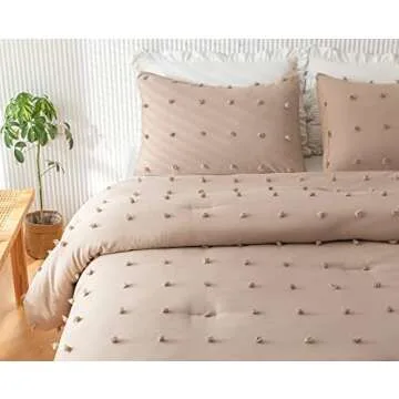 Show moreIntroducing the JANZAA Queen Comforter Set, a perfect blend of style and functionality designed to elevate your bedroom decor. This 3-piece bedding set includes a sumptuous taupe comforter adorned with charming tufted pom poms, complemented by two ultra-soft pillowcases. Crafted for all seasons, this bedding set promises warmth and comfort without compromising on style. Whether you're curling up for a cozy night or dressing your guest bedroom, this ultra-soft fluffy comforter is a versatile addition to any space!