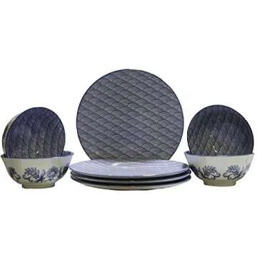 Show more Discover the elegance of traditional Japanese dining with this exquisite Japanese dish set featuring a stunning Saikai design. Crafted with care, this set includes 4 large 10.75 inch plates perfect for breakfast, lunch, or dinner, and 4 large bowls measuring 6 inches in diameter and 3 inches in height ideal for servings of cereal, pho, soup, or any entrée. Each piece is a testament to quality and craftsmanship, making every meal a special occasion.