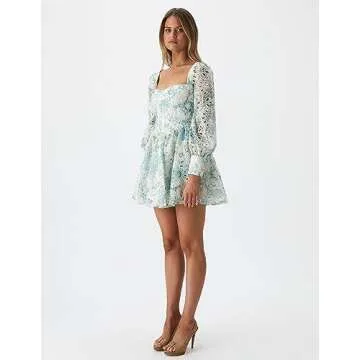 Jardinvue Women Square Collar Dress Summer Dress Puffy Dress for Women Hollow Sleeves Dress Flower Girl Dress Floral Dress