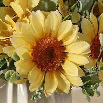 JARELING Artificial Sunflowers Flowers in Vase Fake Silk Flowers Arrangement with Vase Table Centerpieces for Home Decoration (Yellow)