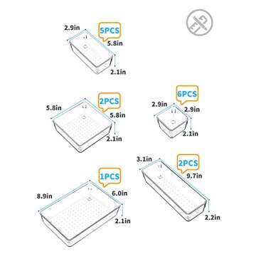 Show more Introducing an essential solution for anyone looking to declutter and organize their living space: the 16-Piece Clear Plastic Drawer Organizer Set! This versatile collection from a trusted brand is expertly designed to not only enhance your organization but also bring a sense of tranquility to your chaotic drawers. Made from high-quality materials, each tray in this set offers durability and functionality, ensuring that your items remain securely in place without the risk of breakage.
