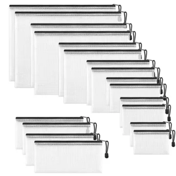 Show more If you’re looking for a way to bring order to chaos, look no further than the JARLINK 18 Pack 8 Sizes Mesh Pouches. This essential organizing solution comes with a diverse assortment of 18 durable mesh pouches in a stunning range of 9 colors. Each pouch varies in size, catering to a variety of storage needs, from easy travel solutions to straightforward home organization. You'll find pouches sized from 5.1x4.1 inches to 15x11 inches, giving you the flexibility to store everything from school supplies to travel toiletries.