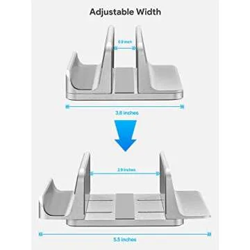 Crafted from premium anodized aluminum, this vertical stand not only guarantees durability but also exudes modern elegance that complements any workspace decor. The thoughtful design incorporates non-slip silicone mats, protecting both your devices and the desk surface from scratches. Reviewers have noted the stand's solid and heavy feel, a testament to its high-quality construction that instills confidence in its use — it won’t tip over, even when holding larger laptops.