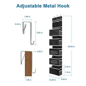 JARLINK 2 Pack Over The Door Hanging Organizer with 5 Large Pockets, Back of Door Storage for Baby Nursery Bathroom Bedroom Kitchen Dorm Closet Pantry Camper RV (Black)