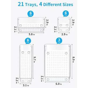 JARLINK 21 Pack Desk Drawer Organizer Trays with 4 Different Sizes, Versatile Clear Drawer Organizers Storage for Bathroom, Makeup, Bedroom, Kitchen, Office Supplies, Craft (Clear)
