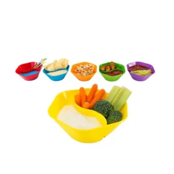 Show moreIntroducing the Jarratt Industries Double Dipper Chip and Dip Snack Bowls—a revolutionary addition to your kitchen that not only maximizes functionality but also enhances your snacking experience! Made in the USA, these divided bowls are designed for versatility, allowing you to indulge in your favorite snacks without the chaos of multiple dishes. Each bowl features a clever split design, making it ideal for serving everything from chips and dips to vegetables and dressings or even cereal alongside milk. With six vibrant colors (red, yellow, blue, purple, orange, and green) in this set, they add a fun touch to any occasion while keeping your snacks organized and appealing.