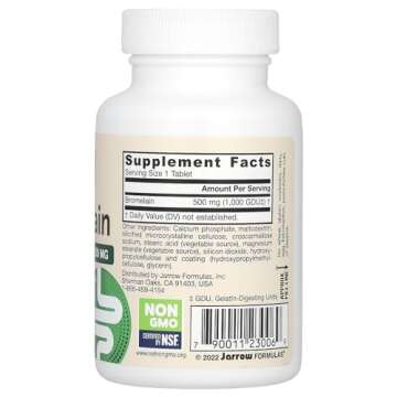 Jarrow Formulas® Bromelain Tablets, 500 mg Dietary Supplement for Protein Digestion, 60 Tablets, 60 Day Supply