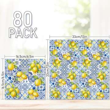 JarThenaAMCS 80Pcs Tiles Lemons Paper Napkins - Decorative & Disposable