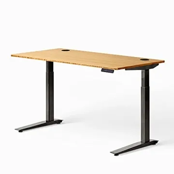 Jarvis Fully Standing Desk 60" x 30" Natural Bamboo Top - Electric Adjustable Desk Height from 25.5" to 51" with Memory Preset Controller (Rectangle, Alloy Frame)