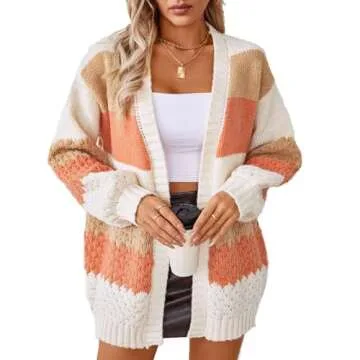 JASCLS Women's Long Sleeve Color Block Chunky Cable Knitted Oversized Sweater Cardigans for Women