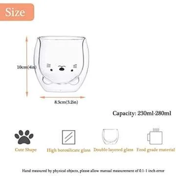 Show moreIntroducing the jasdel Cute Double Wall Glass Cup, a delightful fusion of style and functionality. Crafted from high-quality borosilicate glass, this charming cup is engineered to withstand heat and condensation, surpassing the durability of traditional glass. Say goodbye to cracks when pouring in your favorite hot beverages. With a whimsical design featuring adorable animal motifs, this cup enhances your drinking experience by letting you encounter delightful creatures with every sip. Perfect as a gift or a personal treat, this 250ml (8.4oz) cup is both practical and charming, making it an essential addition to any kitchen or café setting.