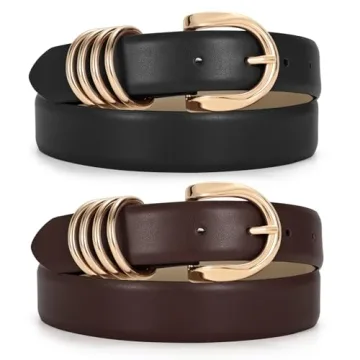 Show moreThe JASGOOD 2 Pack Women's Leather Belts are the epitome of style and versatility, created specifically to enhance your wardrobe. Made from high-quality PU leather, these belts ensure a soft touch while providing ultimate comfort throughout the day. Featuring eye-catching gold buckles adorned with decorative loops, these belts not only secure your outfits but also elevate your look, making them indispensable additions to every fashion-savvy woman's collection. With a width of 1.18 inches, the design expertly accentuates your waistline, creating a flattering, curvy silhouette that enhances any outfit you choose.