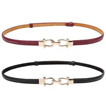 Show moreExperience the elegance and sophistication of JASGOOD Leather Skinny Women Belts with this stunning 2-pack set, designed specifically for the modern woman. Crafted from high-quality genuine cowhide leather, these belts are not just about looks; they promise utmost comfort with their soft and supple texture. Perfectly adjustable to cater to waist sizes below 43 inches, these slim belts measure 0.48 inches in width, providing a sleek and polished finish to any outfit. The distinct interlocking metal buckle allows for easy wear and removal, while the sliding feature ensures an impeccable fit every time.