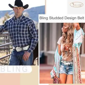 Show moreIntroducing the JASGOOD Rhinestone Studded Belt - the ultimate accessory that combines style and functionality for both men and women. Crafted from durable PU leather, this western cowgirl belt features an exquisite design embellished with dazzling artificial diamonds. The unique tail design adds a fashionable twist, while the dense arrangement of diamonds creates a super shiny look that is sure to catch eyes wherever you go. Whether you're dressing up for a night out or sprucing up your everyday attire, this belt will elevate your outfit to new heights.
