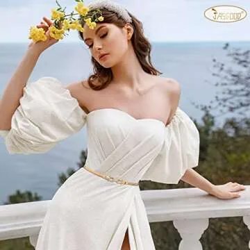 JASGOOD Skinny Metal Waist Belt for Dress Fashion Gold Waistband Elastic Metal Chain Belt, A-Gold