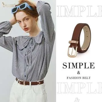 JASGOOD Women Leather Belt Gold Buckle Ladies Elegant Faux Leather Waist Belt for Jeans Pants