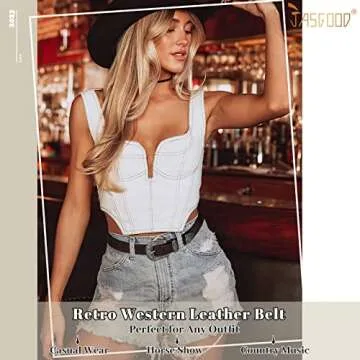 JASGOOD Women Leather Belts Ladies Vintage Western Design Black Waist Belt for Pants Jeans Dresses (Fit Size 23-27 Inches, F-Coffee)