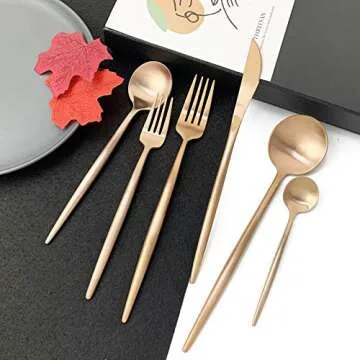 JASHII 18/10 Rose Gold Flatware Silverware Set 304 Stainless Steel Copper Flatware Cutlery Set| 24-Piece Adaline Royal Modern Satin Finish| BEST Birthday Wedding Gift (Rose Gold Matte 4 Sets)