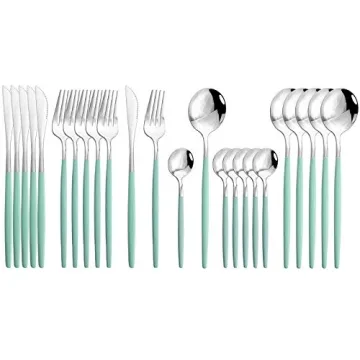 Show moreElevate your dining experience with the JASHII Flatware Serving Set, a perfect blend of modern elegance and functional design. This 24-piece mint green silverware set includes everything you need for a complete service for six, featuring dinner knives, dinner forks, and both large and small spoons. Crafted from high quality 18/10 stainless steel, this chic cutlery is not only sturdy and durable but also resistant to corrosion and high temperatures, making it safe for daily use. The luxurious polishing creates a brilliant mirror-like finish that will impress your guests and perfectly complement your table setting.