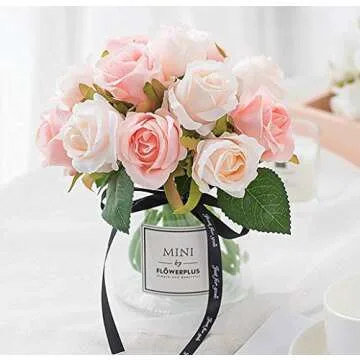 Jasion Artificial Roses Flowers 12 Heads Arrangement Silk Bouquet for Home Office Parties Bridal and Wedding Decoration (Pink with Champagne)