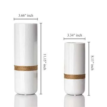 Jasius White Flower Vase Set - Elegant White Vases for Decor with Rustic Boho Rope Accent, Non-Scratch Base - Decorative Minimalist Vases for Flowers, Home, Office, Living Room, Kitchen - 2-Piece