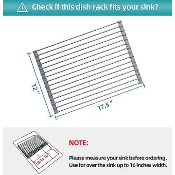 JASIWAY Roll Up Dish Drying Rack, Over The Sink Dish Drying Rack, Foldable, Portable,304 Stainless Steel Dish Drainers for Kitchen Inside Sink Counter (Sliver, 17.5" x12“)