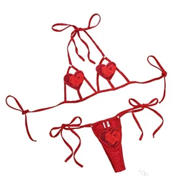 JasmyGirls Women Sexy Valentines Day Lingerie Set Red Heart Design Micro Bikini