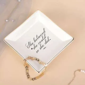 The phrase "She Believed She Could So She Did" is delicately inscribed on the dish, making it a powerful reminder of resilience and determination – an inspiration for anyone in their personal or professional journey. Gift it for birthdays, graduations, or as a heartfelt gesture for special milestones, letting loved ones feel appreciated and celebrated.