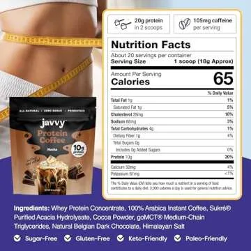 Javvy Mocha Protein Coffee - Premium Whey Protein & Instant Iced Coffee - 100% Arabica Coffee - Zero Artificial Flavors & Sweeteners, 20 Servings