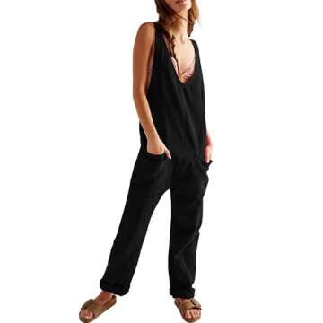 Jawmeu High Roller Corduroy Overalls for Women Casual Sleeveless Cord Jumpsuit Onesie with Pockets(Black-M)