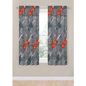 Jay Franco Disney Pixar Cars Lighnting Speed 63" Inch Drapes - Beautiful Room Decor & Easy Set Up, Bedding Features Lightning McQueen - Curtains Include 2 Tiebacks, 4 Piece Set (Official Product)