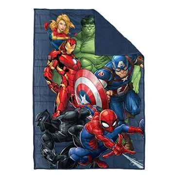 Jay Franco Marvel Avengers Super Hero Squad Weighted Blanket Measures 40x60 inches 5lbs, Kids Bedding Features Captain America, Iron Man, Black Panther, Spiderman, Hulk & Captain Marvel