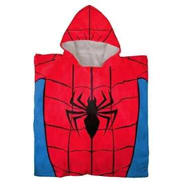 Jay Franco Marvel Super Hero Adventures Spidey Kids Bath/Pool/Beach Hooded Poncho Featuring Spiderman - Super Soft & Absorbent Cotton Towel, Measures 22 x 22 Inches (Official Marvel Product)