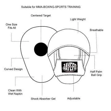 Show moreUnleash your potential with the Jayefo Boxing Pads Focus Mitts, designed specifically for athletes of all levels. These mitts aren't just any training accessory; they represent the perfect blend of quality, functionality, and innovative design. Crafted from high-quality materials, these mitts ensure comfort and durability, making them ideal for rigorous training sessions in boxing, kickboxing, MMA, Muay Thai, or traditional martial arts.