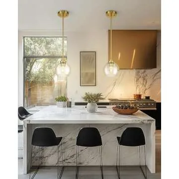 Show moreIlluminate your spaces with an unparalleled sense of elegance with the JAZAVA Modern Polished Gold Pendant Light. This stunning hanging fixture embodies a timeless Mid Century design, marrying function with beautiful aesthetics. The warm polished gold finish juxtaposed with a clear globe glass shade brings a luminescent glow to your kitchen island, dining room, bedroom, or hallway. Not only is it a statement piece, but it also offers versatility, making it an ideal addition to a variety of settings. Transform your interiors into chic spaces with this exquisite pendant light that meets modern sensibilities while nodding to classic designs perfectly.
